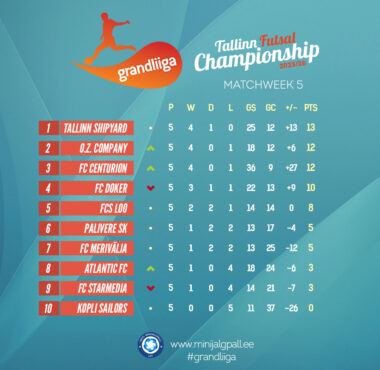 6. voorule läheb vastu ainuliidrina Tallinn Shipyard 13.12.2025 Grandliigas on enne kuuendat vooru tabelis ainuliider tiitlikaitsja Tallinn Shipyard....